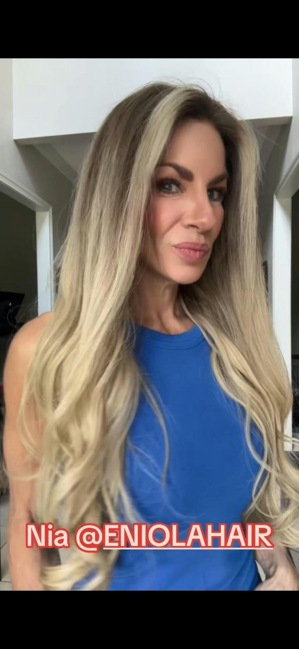 COLOUR: VERY LIGHT CREAMY BLONDE WITH MEDIUM ASH BROWN ROOT MELT