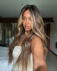 COLOUR: DARK BROWN ROOT WITH MEDIUM BROWN & BLONDE HIGHLIGHTS LACE: HD