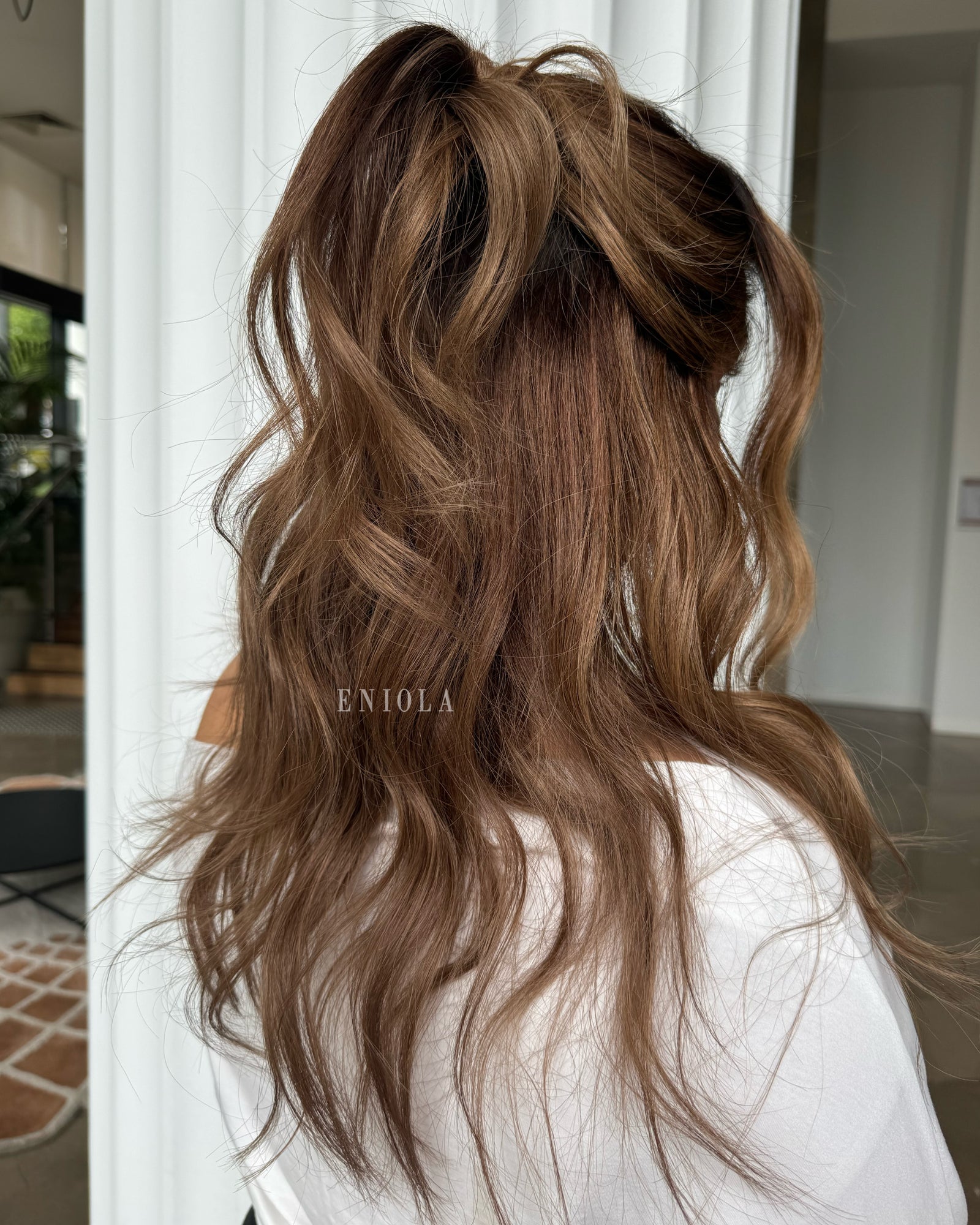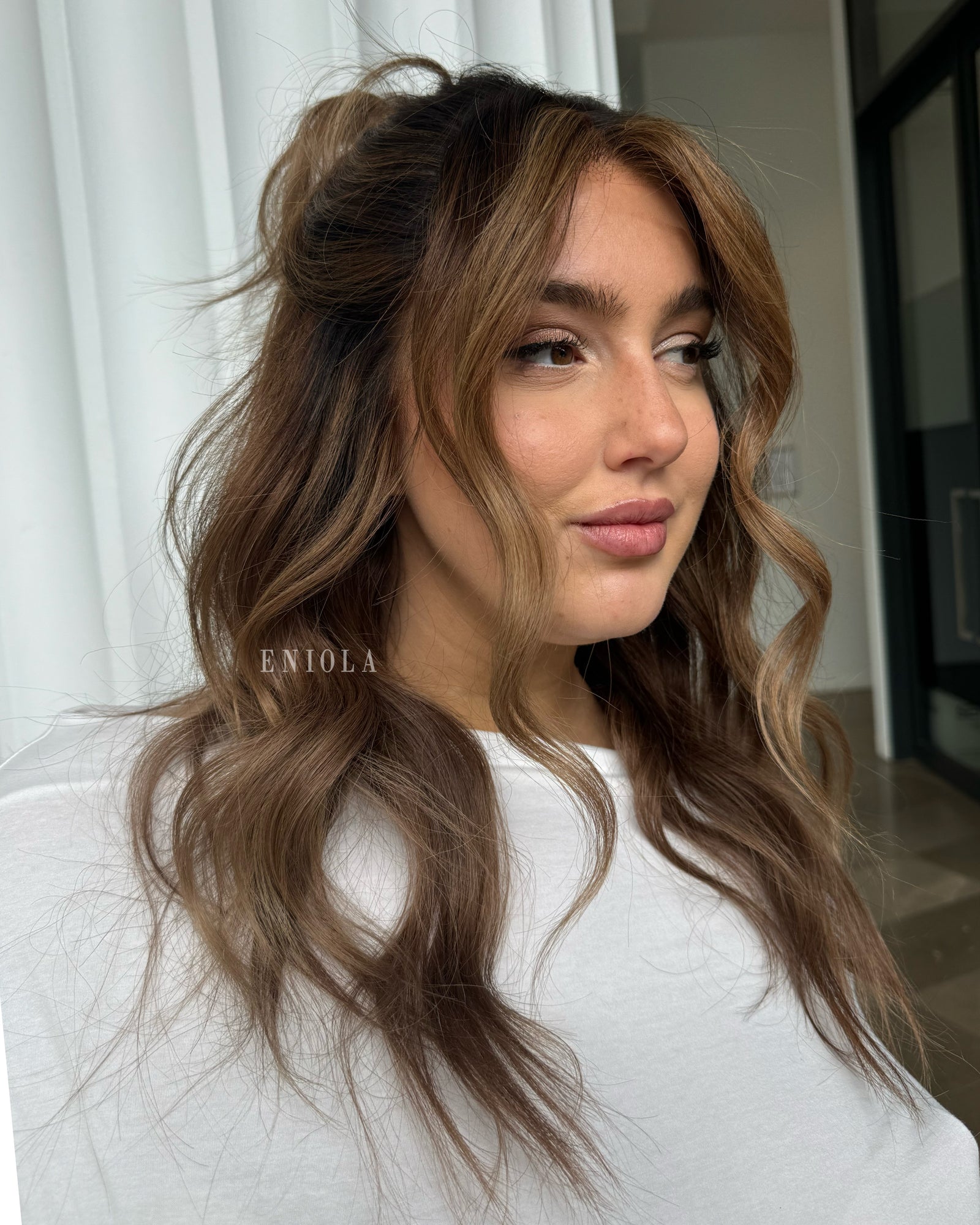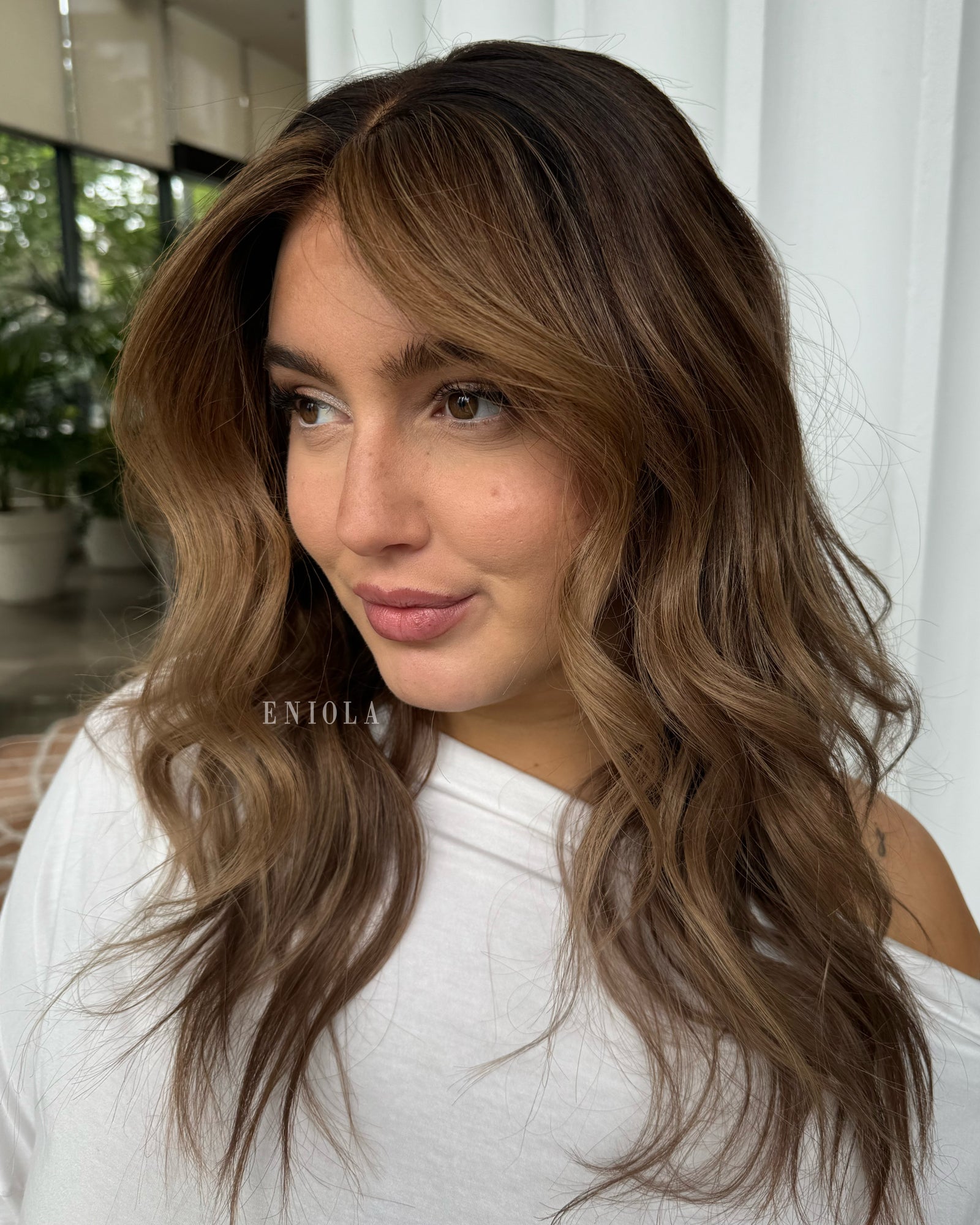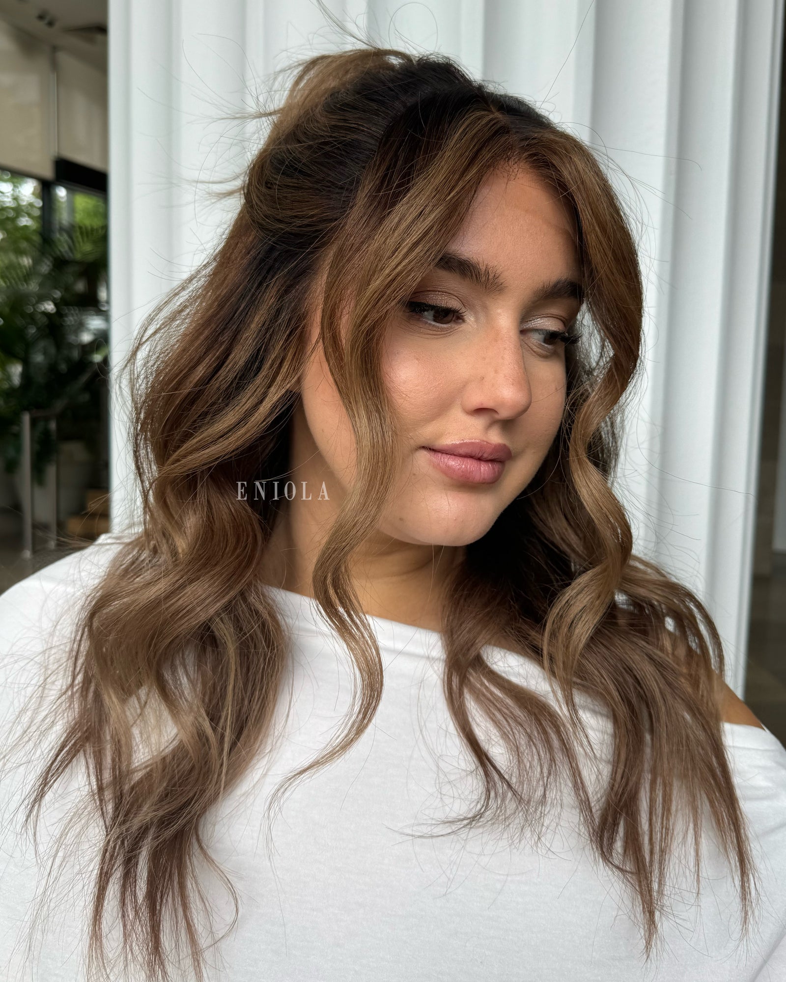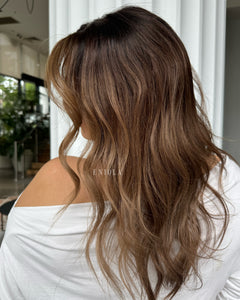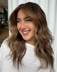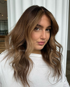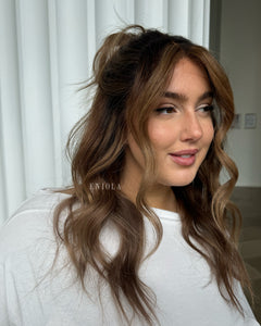 COLOUR: DARK BROWN ROOT WITH MEDIUM BROWN & ASH BLONDE HIGHLIGHTS