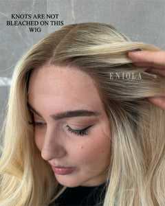 LACE DISCLAIMER: PLEASE NOTE ALL OUR WIGS ARE CRAFTED WITH FULLY BLEACHED KNOTS FOR THE MOST NATURAL LOOK. THIS PROCESS MAKES THE LACE MORE DELICATE THAN STANDARD WIGS. TO MAINTAIN LONGEVITY, PLEASE HANDLE WITH GENTLE CARE, AVOID PRODUCT ON THE LACE, AND SWITCH UP YOUR PART REGULARLY TO PREVENT SHEDDING IN ONE AREA.