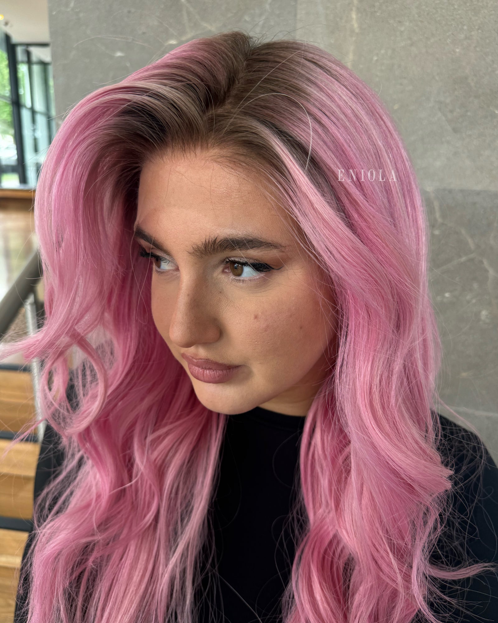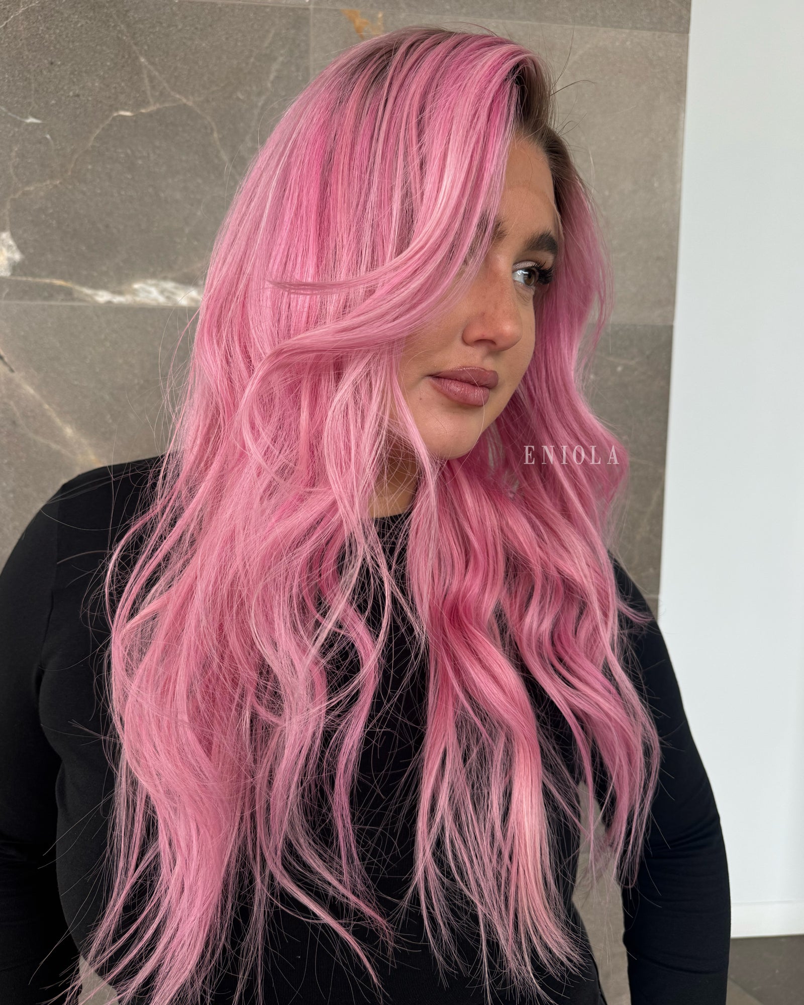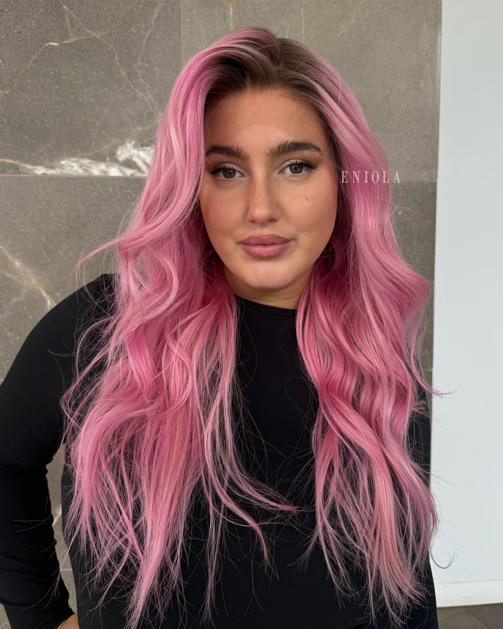 COLOUR: MEDIUM BROWN ROOTS WITH BUBBLEGUM PINK