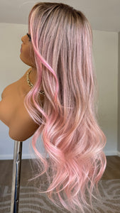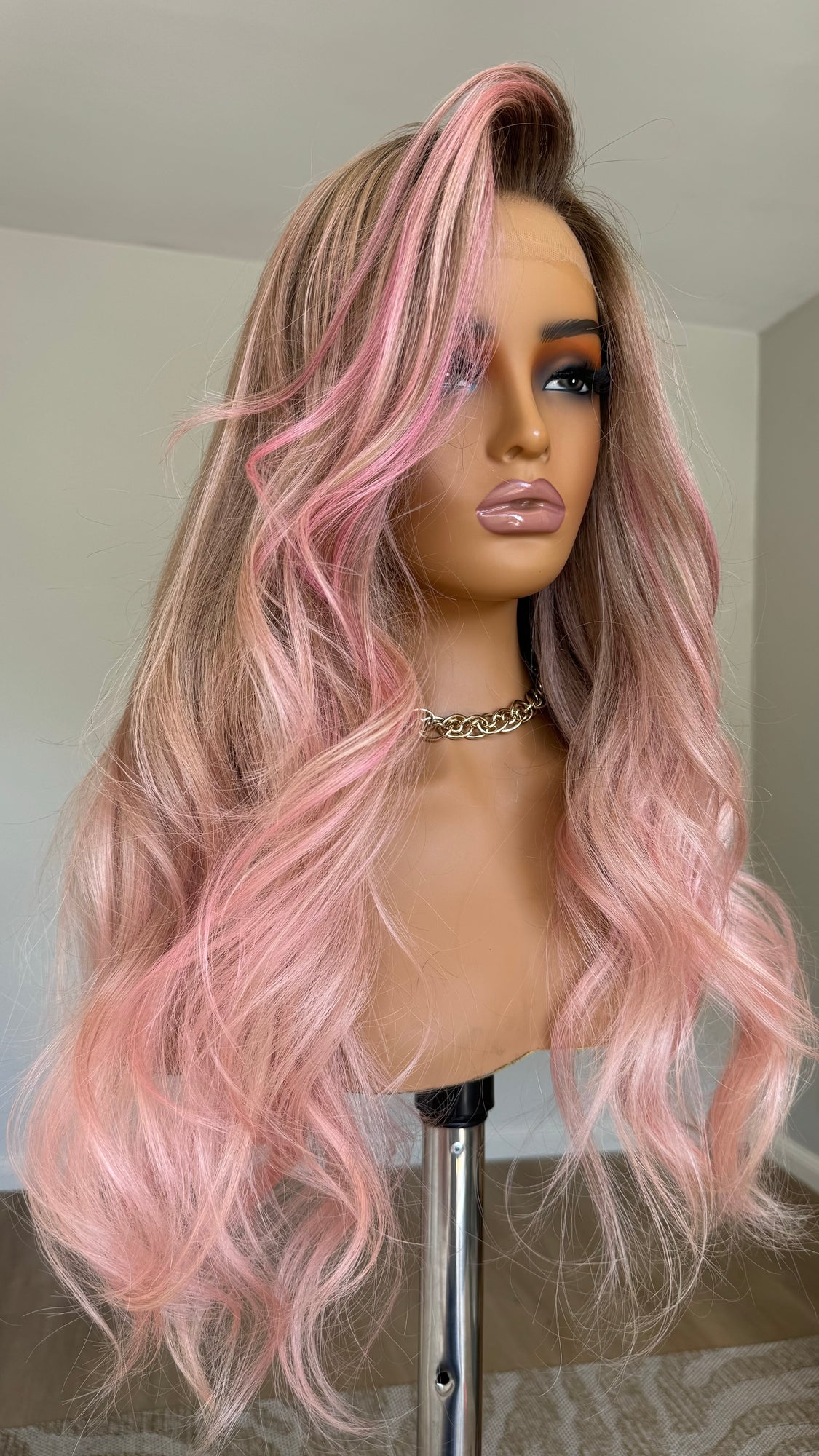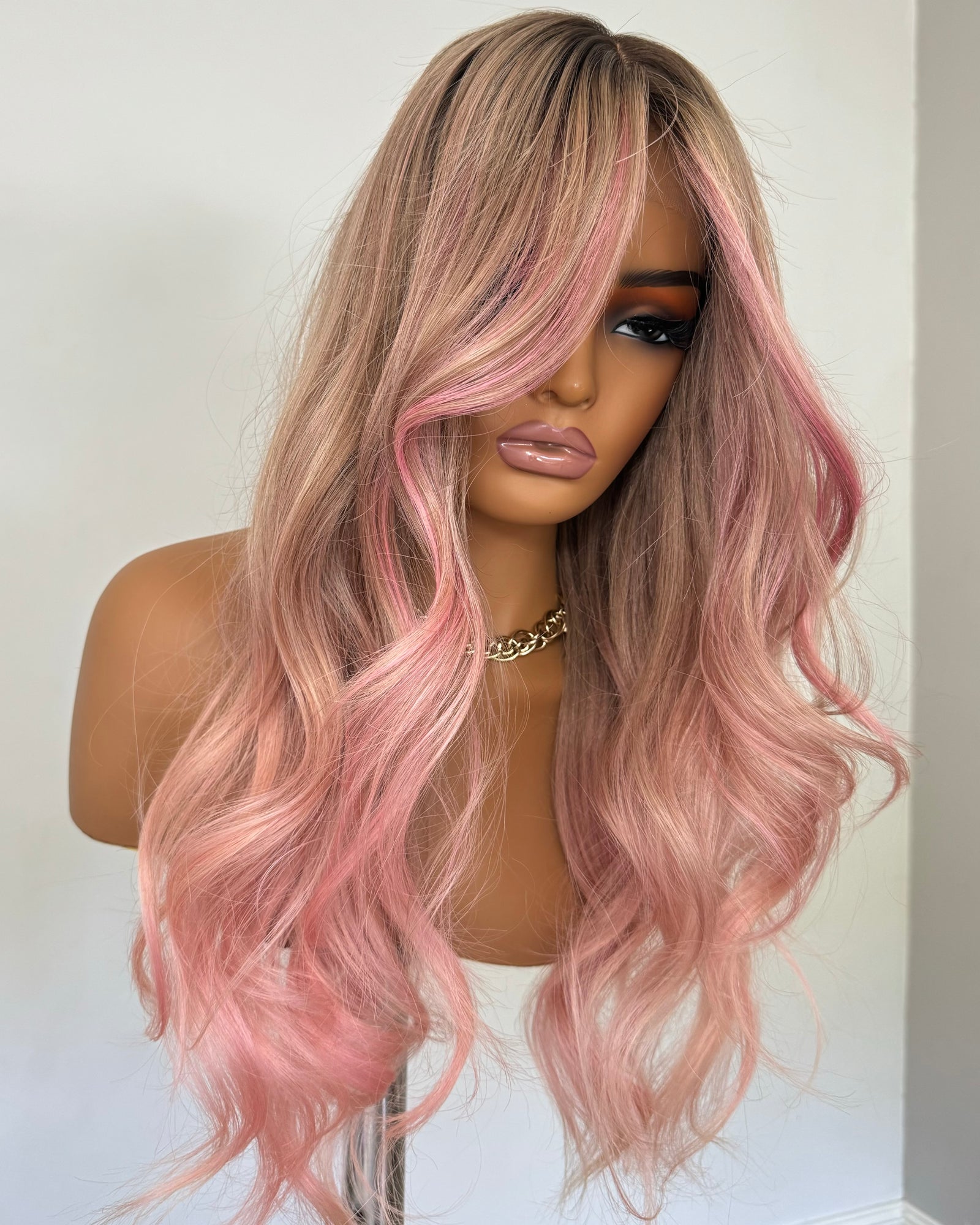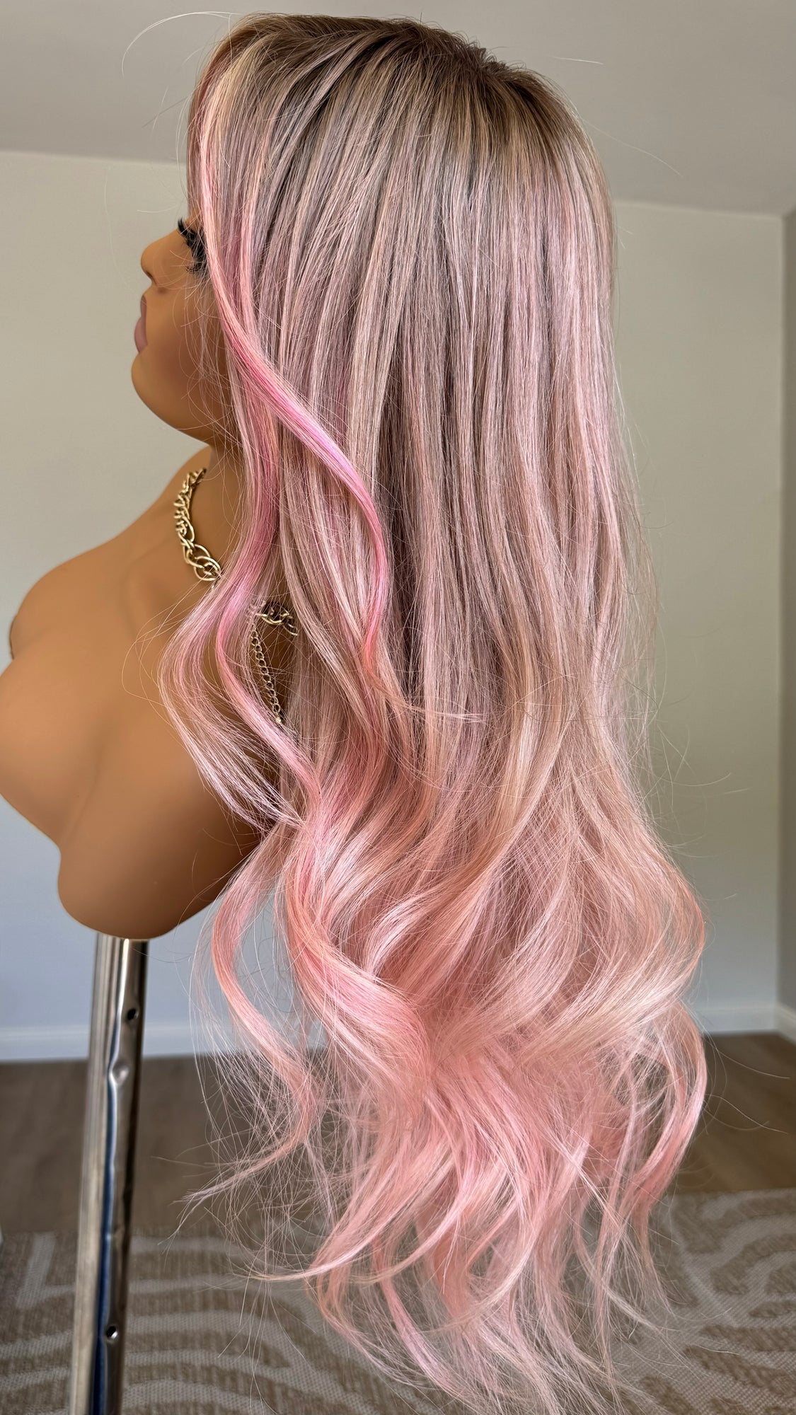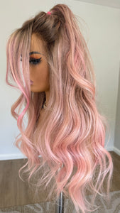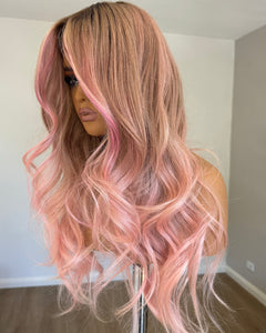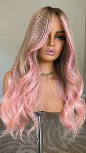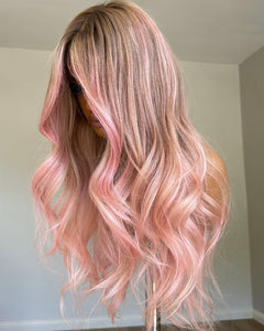 COLOUR: MEDIUM BROWN ROOTS WITH PASTEL PINK OMBRE