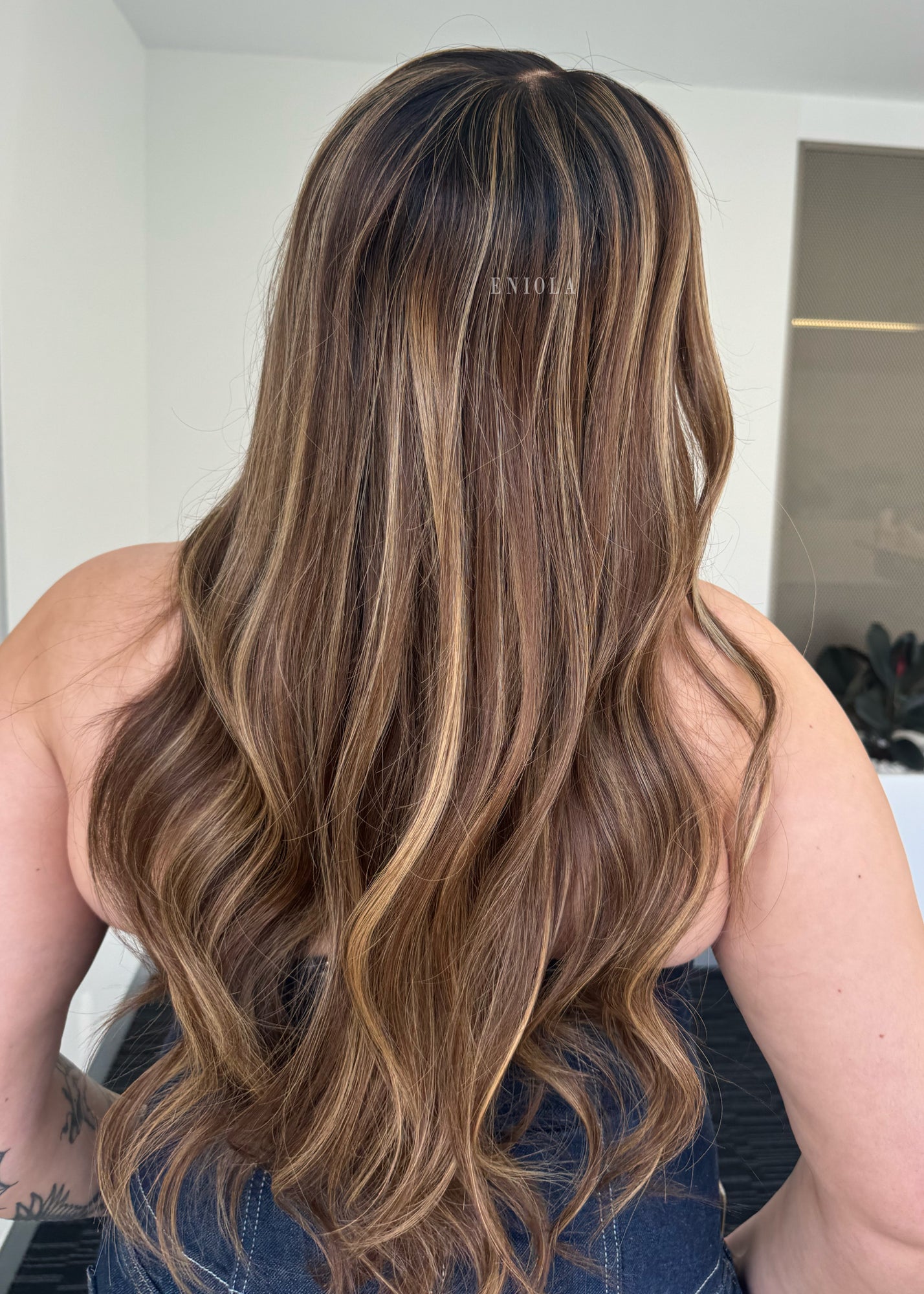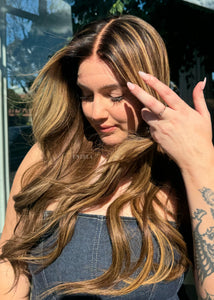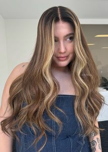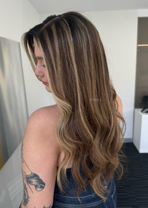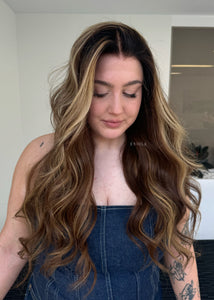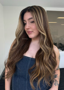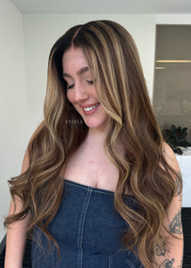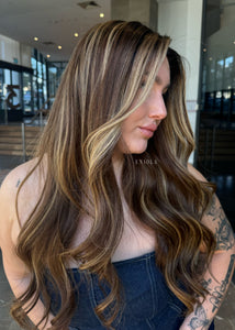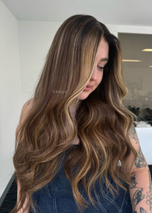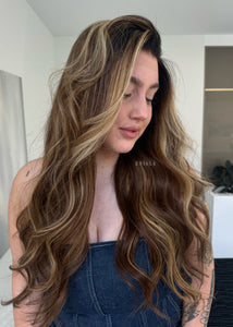 COLOUR: WARM BRUNETTE W HIGH CONTRAST GOLDEN HIGHLIGHTS