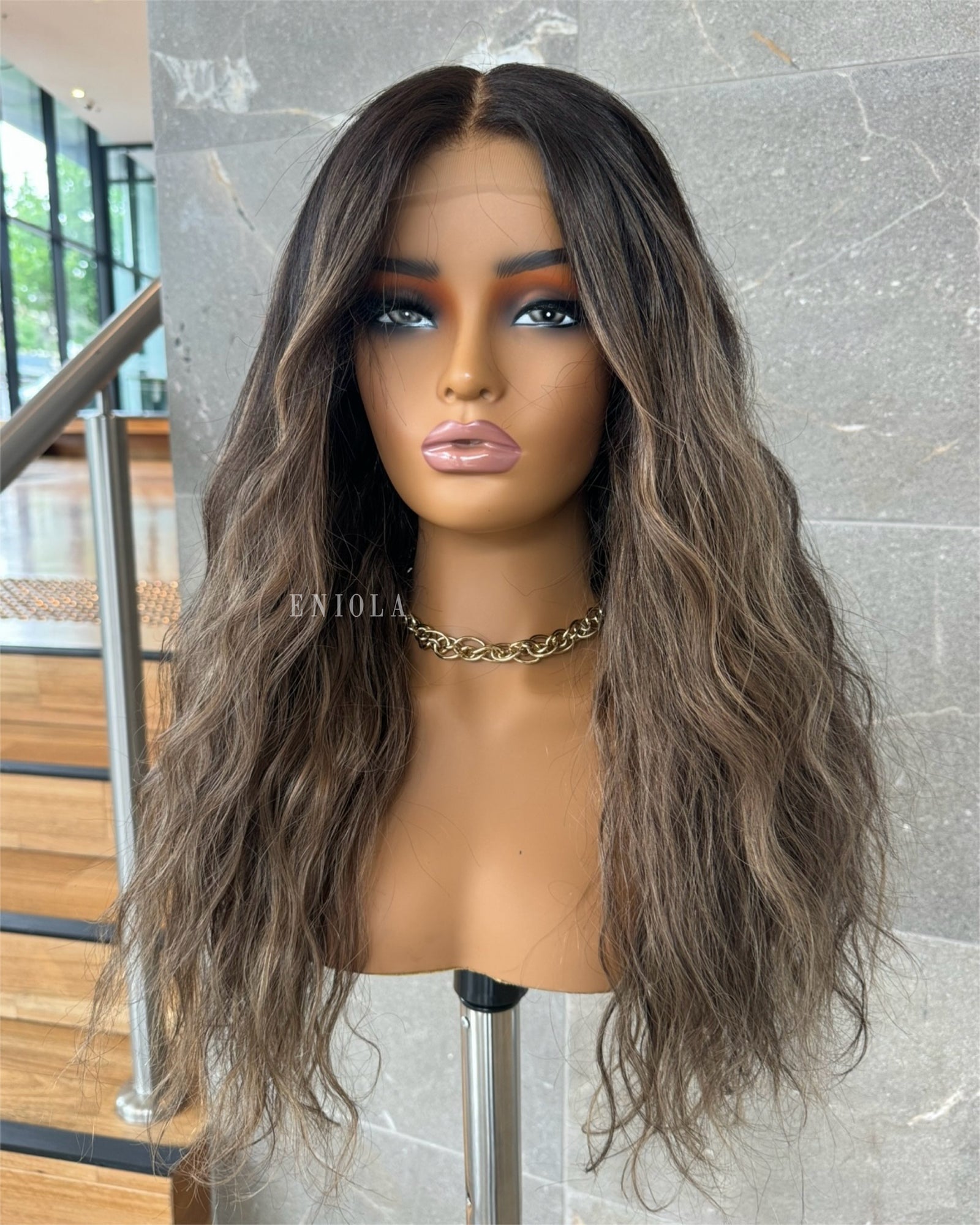 COLOUR: DARK BROWN ROOT WITH MEDIUM BROWN ASHY HIGHLIGHTS